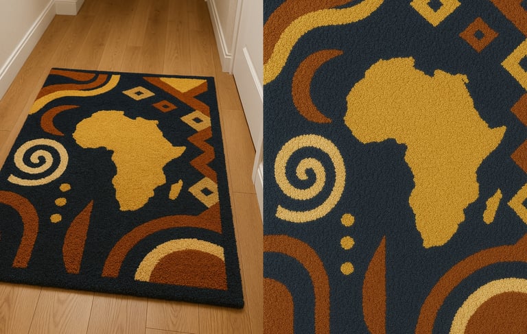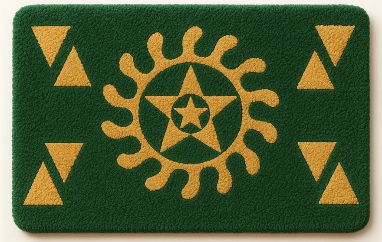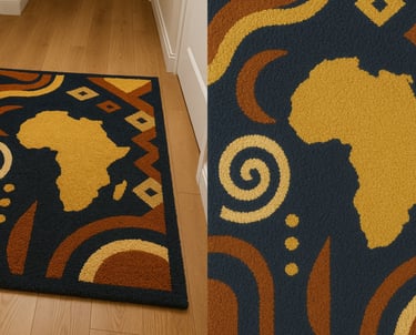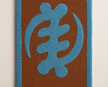 The Story Beneath Your Feet. This is more than a carpet; it is a sacred thread in the long fabric of Ghanaian heritage. The symbol you see, Gye Nyame, comes from the Akan people. It means: “Except for God.” It speaks of power, but also humility. It reminds us that no force is greater, no hand mightier, or presence more enduring than God's. For centuries, this symbol was reserved for kings, priests, and the keepers of tradition. Today, it lives in your space, woven not just with yarn, but with meaning. Each loop of this rug is made with care, and each color is chosen to carry the spirit of faith and strength. Place it where you gather, where you walk, where you rest. Let it remind you: You are protected. You are connected. You are standing on a story far older and far stronger than anything made by hands alone.