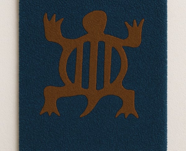 This handcrafted rug features the Denkyem Adinkra symbol, representing the crocodile, an ancient icon of resilience in Akan culture. Though it lives in water, the crocodile breathes air. It survives by adapting, quietly mastering both land and river.