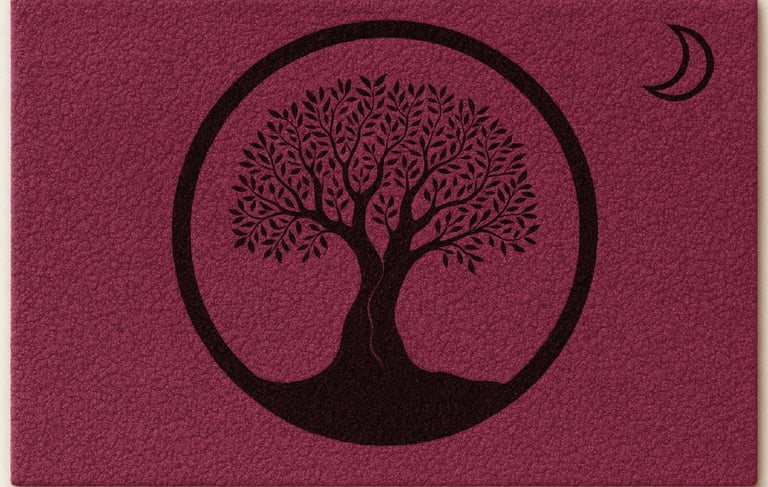 The circle surrounding it reflects unity and protection, while the crescent moon in the corner reminds us of life’s ongoing cycles,growth, change, and renewal.